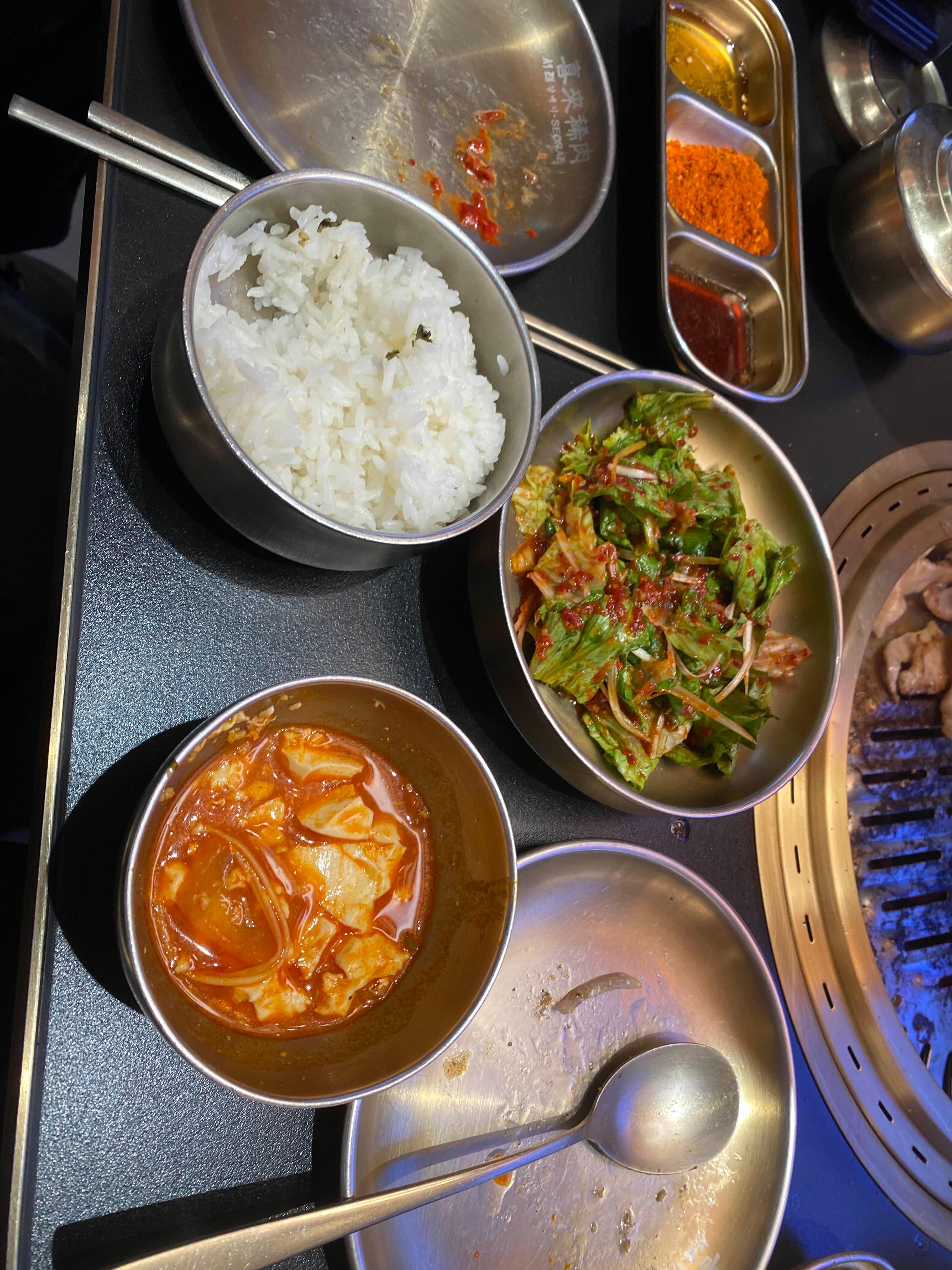 ㅋㅋㅋ 서로 큐알을 보면서, 먹고 싶은 것 고르기!! ~~~~ 모듬 요리가 있다. 여러가지 고기 부위를 조금씩 내오는 요리인가 보다!! 그리고 내 사랑 김치찌개, 또 머였지?? 순두부였나?? ㅋㅋㅋㅋ