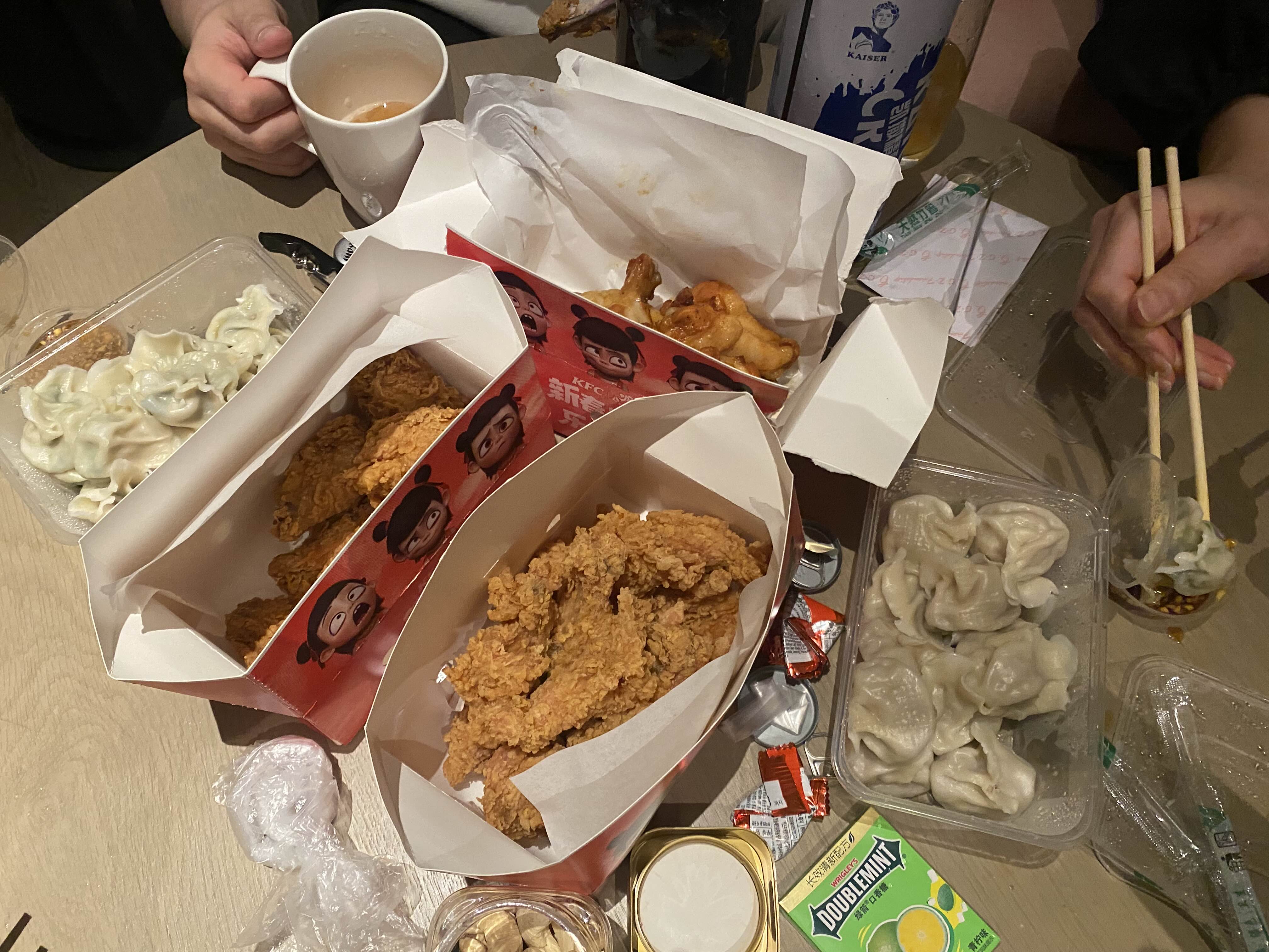 호텔에서 중국식 만두와 치킨 주문!! ㅋㅋㅋ